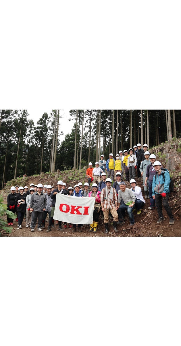 「埼玉県森林づくり協定」は、森林づくり活動を行う企業・団体、活動場所を提供する市町村、活動を支援する埼玉県が協力して、県民共通の財産である森林を守り育てることを目的としたものです。OKIは、地元の森林業者であるウッディーコイケによる苗木提供や森林整備技術指導のもと、社員ボランティアによる森林整備活動を実施します。