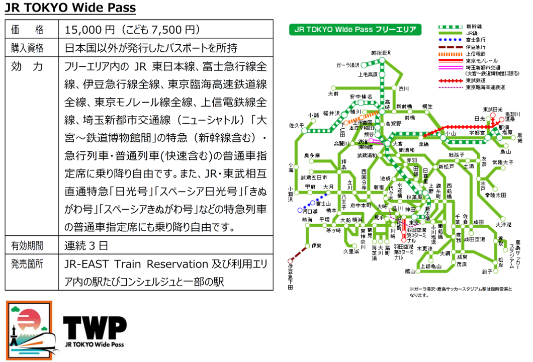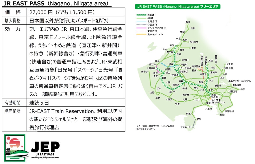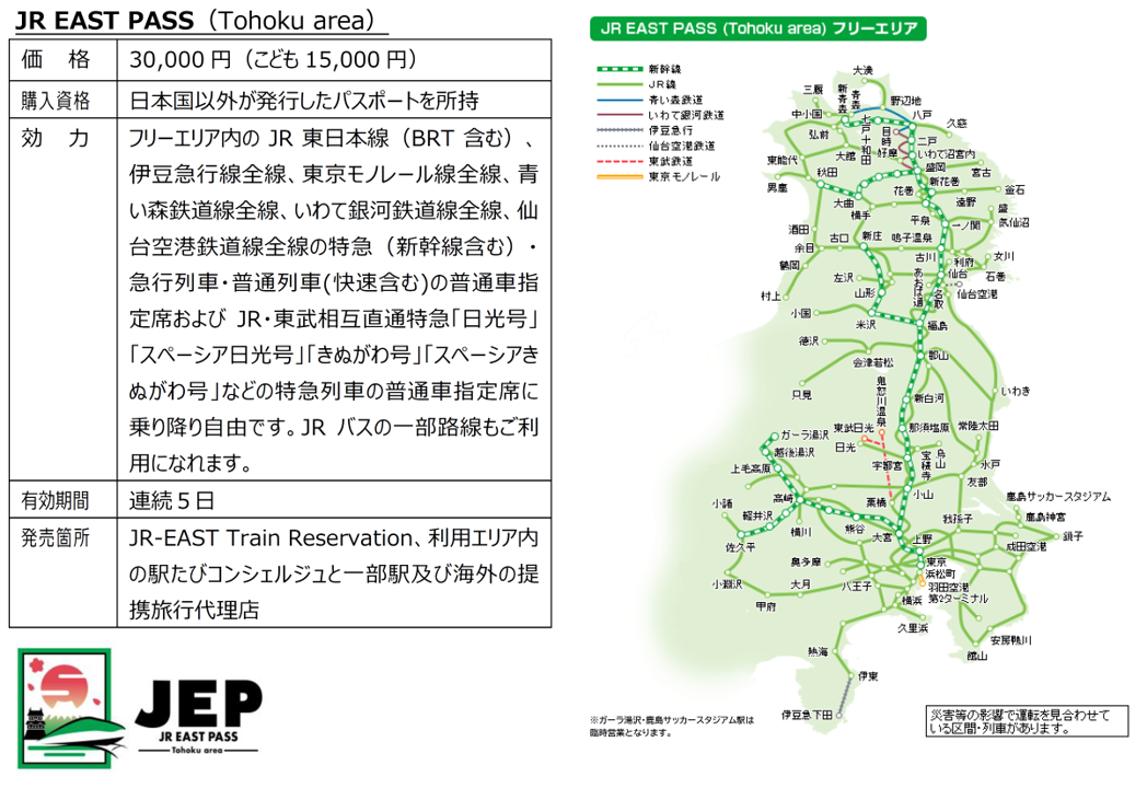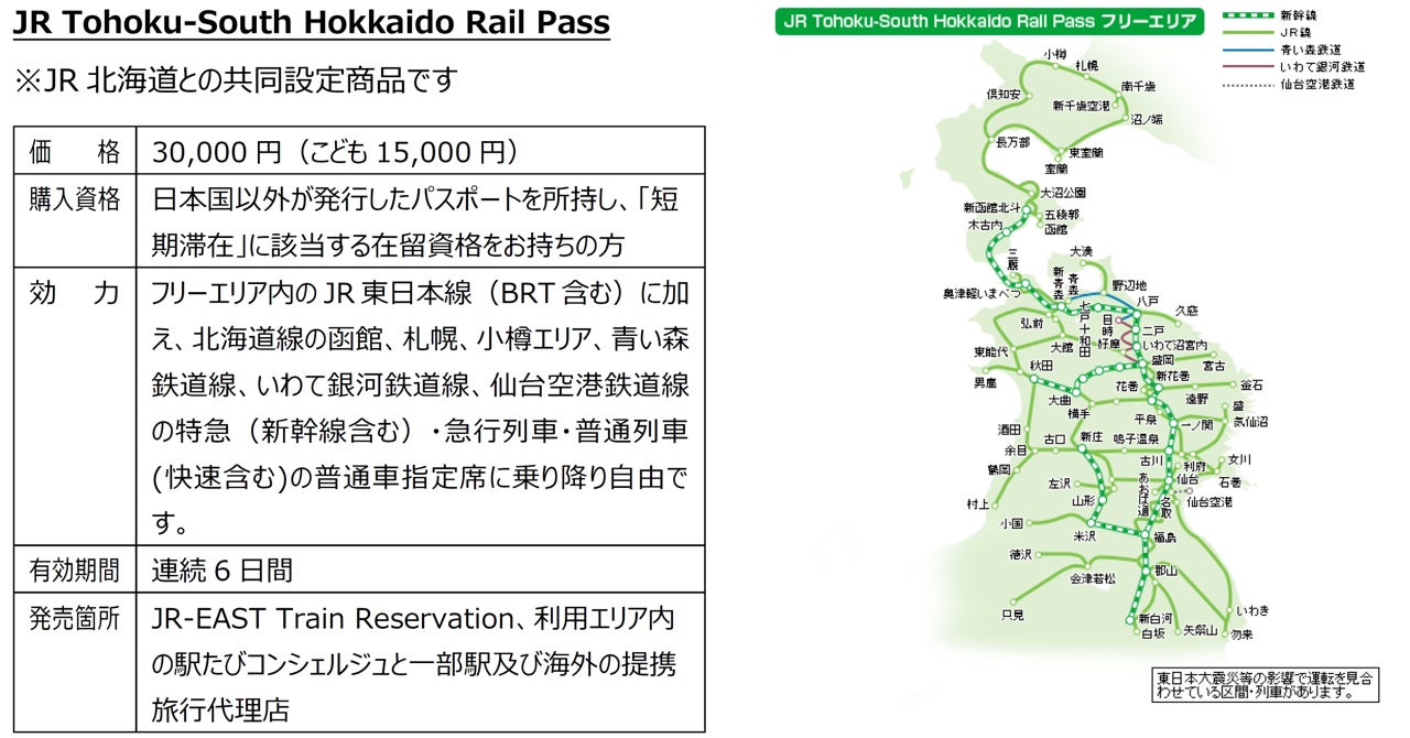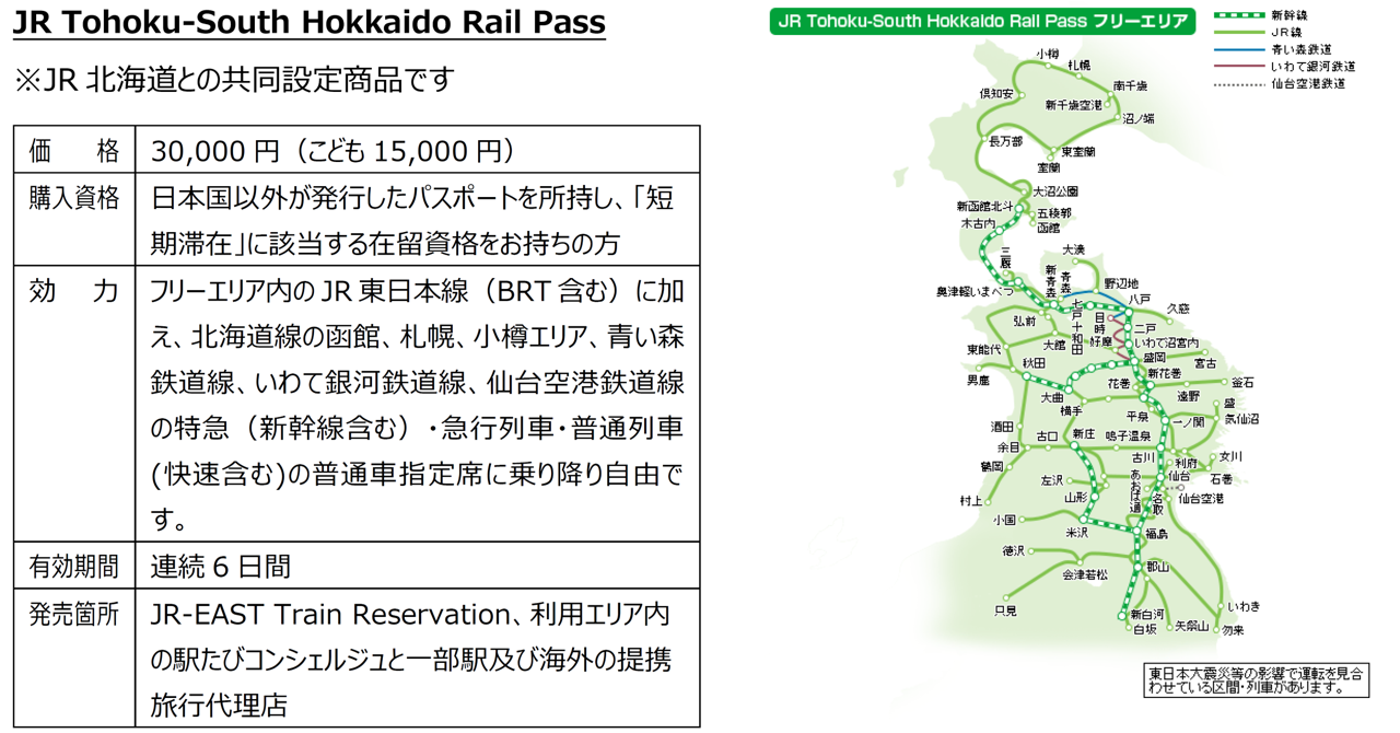 〇東日本旅客鉄道株式会社(本社:東京都渋谷区、代表取締役社長:深澤 祐二、以下「JR東日本」)は、訪日外国人旅行者の旅行ニーズにあわせ、エリアごとに様々な訪日外国人旅行者向け鉄道パス(以下「鉄道パス」)をご用意しております。 〇これらの鉄道パスについて、利用可能エリアの拡大や専用サイトでの発売・指定席予約の導入、自動改札機の利用等によるサービスアップを行ってきたことから、価格改定いたします。 |