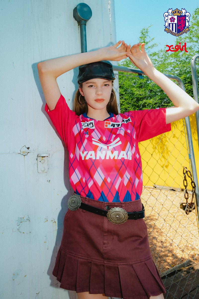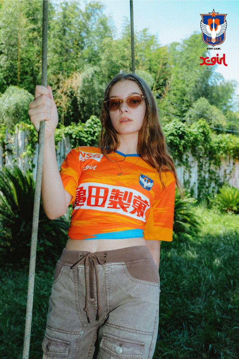 6クラブのそれぞれの個性を表現したデザインやアイコニックなカラーリングとX-girlの個性が融合したコーディネートを提案。コーディネートの特徴は、ユニフォームをメインとし、デザイン性のあるスカートやパンツを使用したX-girlらしいスタイリングに仕上げました。ピッチ上の選手とともに、ストリートを彩るファッション性の高いスタイリングとなっています。
