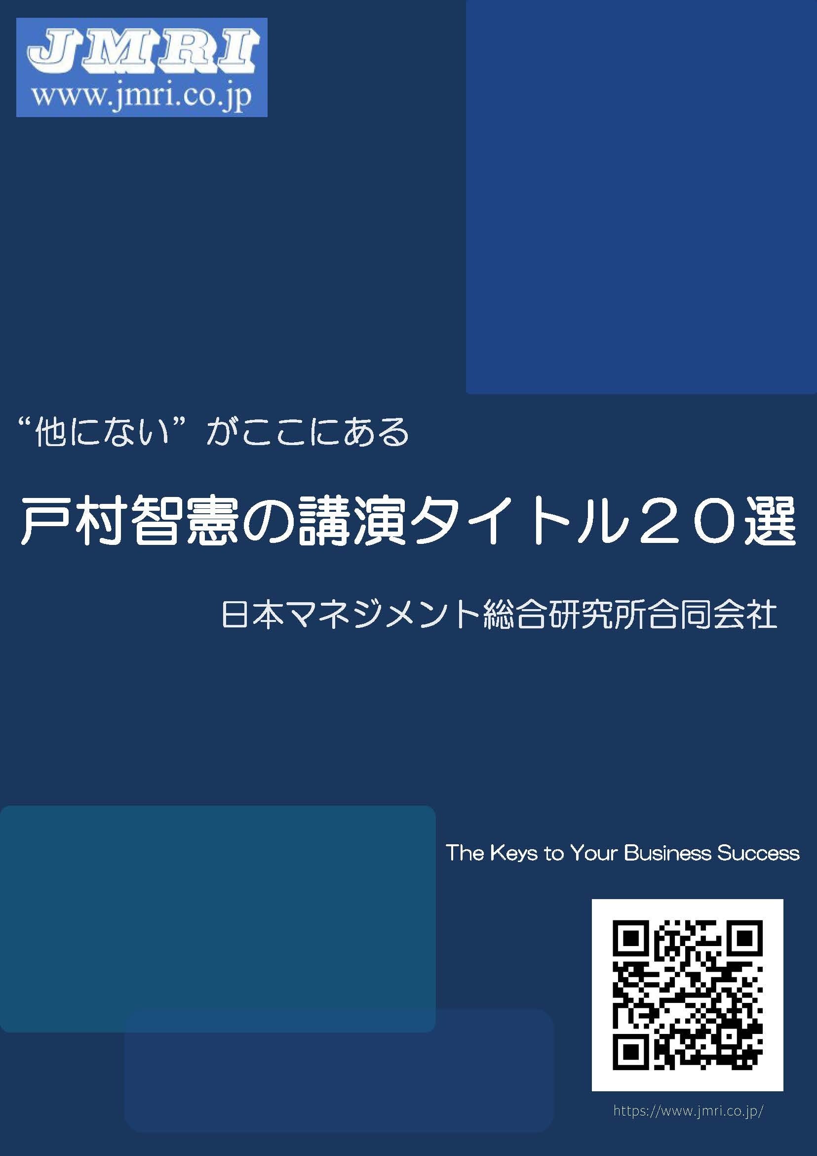 ・冊子: 「戸村智憲の講演タイトル20選」2026年版 https://www.jmri.co.jp/20.Selected.Lecture.Titles.Tomonori.Tomura.JMRI-LLC.pdf