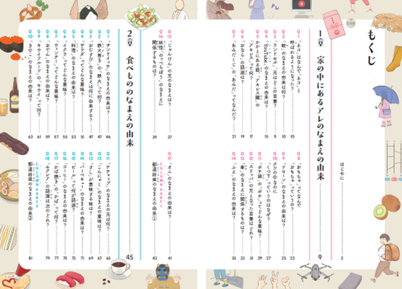 子どもの頃は、誰しもが一度、大人に教えられたモノの名前に対して、「なんで」と疑問に思ったことがあるのではないでしょうか。私たちが日々当たり前のように呼んでいるモノの「なまえ」に、実はそれぞれ理由があり、あらためてその由来を知ると、驚きとともに、周りの世界が一瞬で面白く感じます。