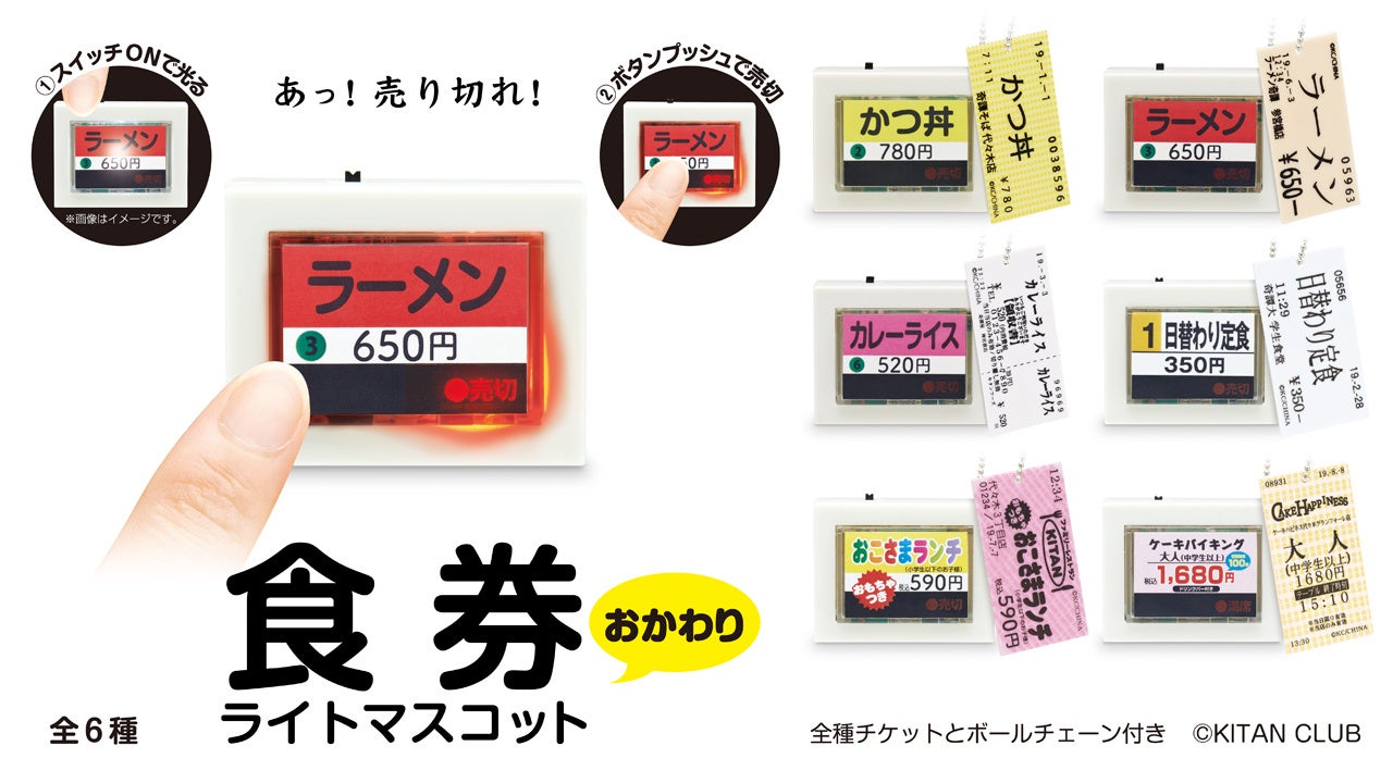 スイッチONでライトが点灯し、ボタンを押すと売り切れの赤いライトに切り替わる2段階ライトギミックがクセになる! 2018年発売の第1弾と、2019年発売の第2弾から人気の種類をセレクトしたBEST版です
