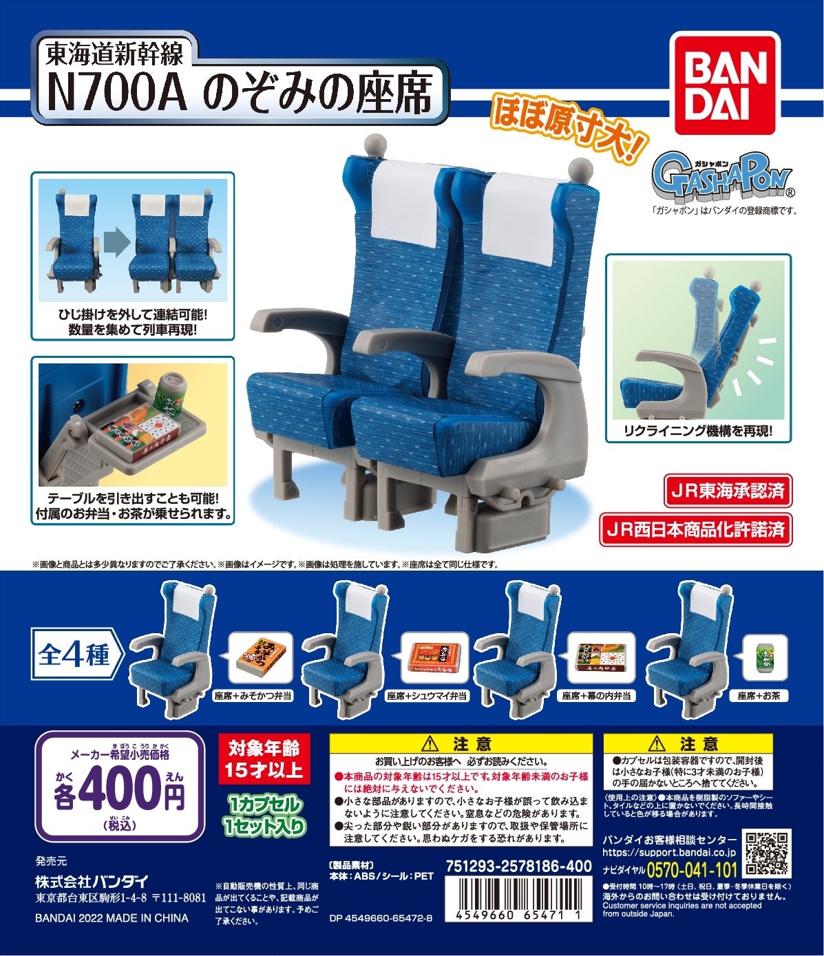 東海道新幹線のぞみの座席がガシャポンに!リクライニングやテーブルも引き出せる本格派。ひじ掛けを外して連結もできます。