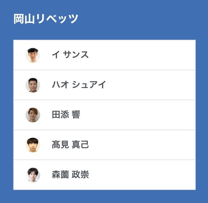 ノジマTリーグ 2022-2023シーズン 公式戦 11月26日開催 岡山リベッツ vs T.T彩たま ベンチ入り選手発表