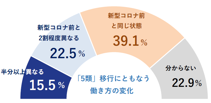 「5類」へ移行後、働き方が『半分以上異なる』とする企業は15.5%となった
