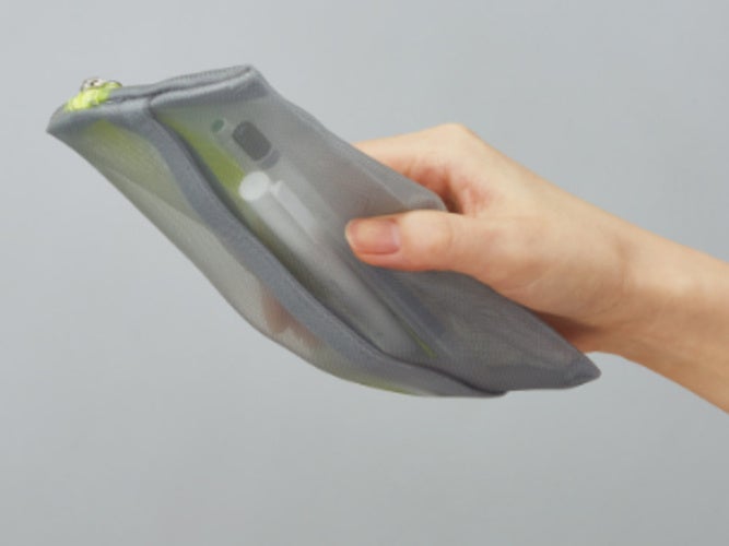 素材はほどよく透けるメッシュで中身が確認でき、カラーバリエーションはシルバーグレー、ネイビー、エメラルドグリーン、ライトピンクの4色を用意しました。
