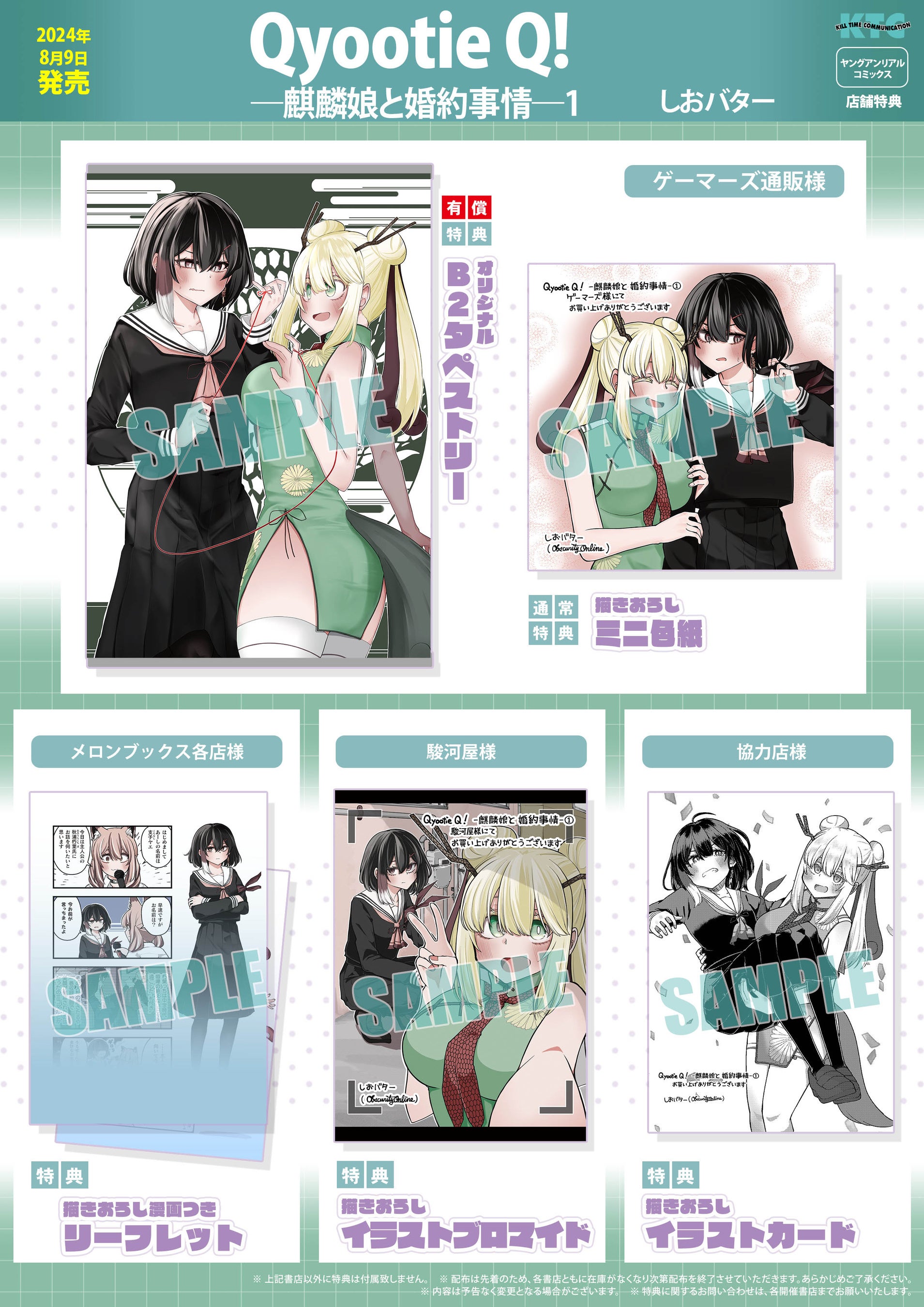 ヤングアンリアルコミックス最新刊『Qyootie Q! ―麒麟娘と婚約事情― 1』発売!Xフォロワー19万人を誇る「しおバター」先生が描く、亜人ヒロインたちと不良少女が織りなす学園ガールズラブ!