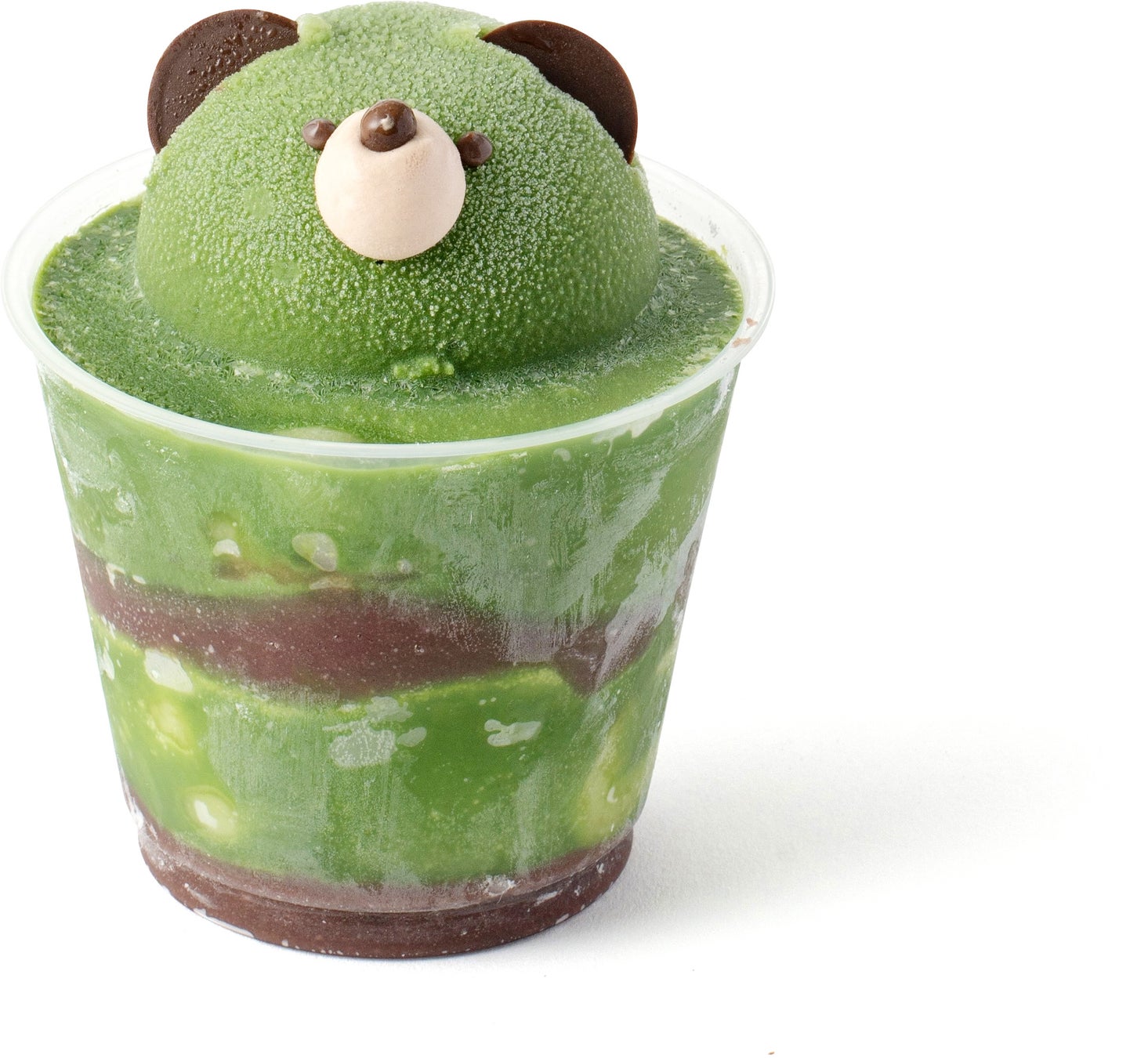 鹿児島県の名産品で知られる氷のデザートしろくまを、ヤナギムラオリジナルフローズンで。宇治抹茶を使うお茶フローズンの中には、あんこと白玉が入っています。