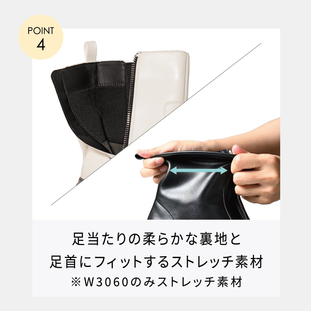 「フロントジップ」タイプでは、トレンドのフロントジップデザインに、無駄のないミニマルな金具が、足元にさりげないモード感と洗練さを与えてくれます。