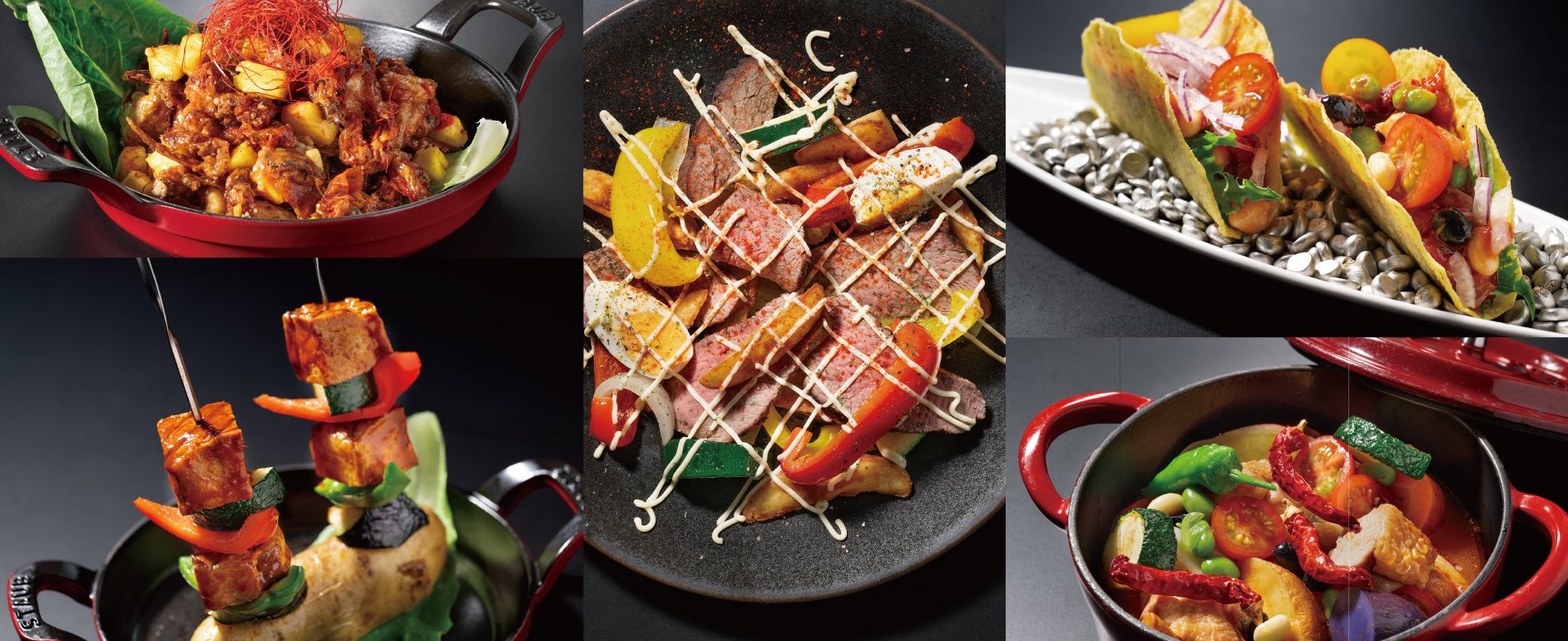 天日塩で焼き上げた牛肉の串焼き シュラスコスタイルで(ブラジル)、岡山県産ピーチポーク キューバ風プロシェット(キューバ)、ピケマチョ~南米ボリビアのソウルフード(ボリビア)、プディンデパン(ドミニカ) ほか