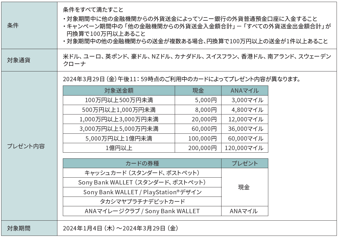 外貨預金残高6,000億円達成記念「ソニー銀行への外貨送金で現金またはマイルをプレゼント」キャンペーン実施のお知らせ