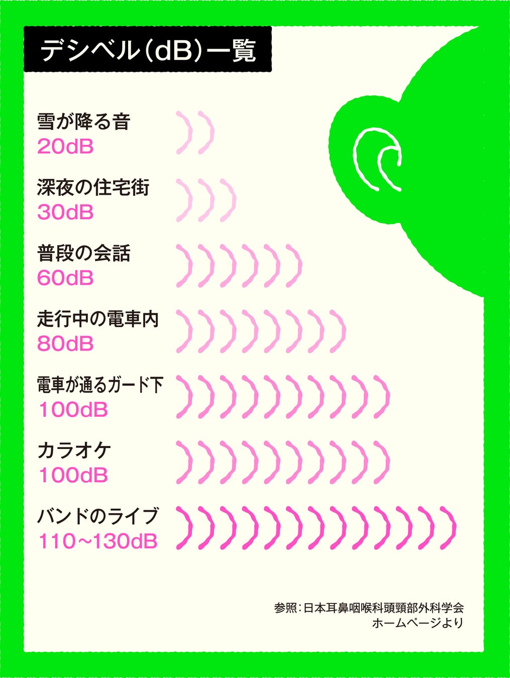 どのくらいの音量を、どのくらいの時間聴き続けていいかを知っていれば、対策の仕方も変わってくるはずです。まずはデータを見て、耳の許容値を知ることが大切です。