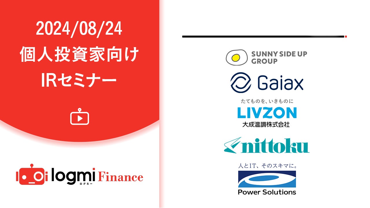 8月24日(土)、ログミーファイナンス主催 個人投資家向けIRセミナー登壇のお知らせ
