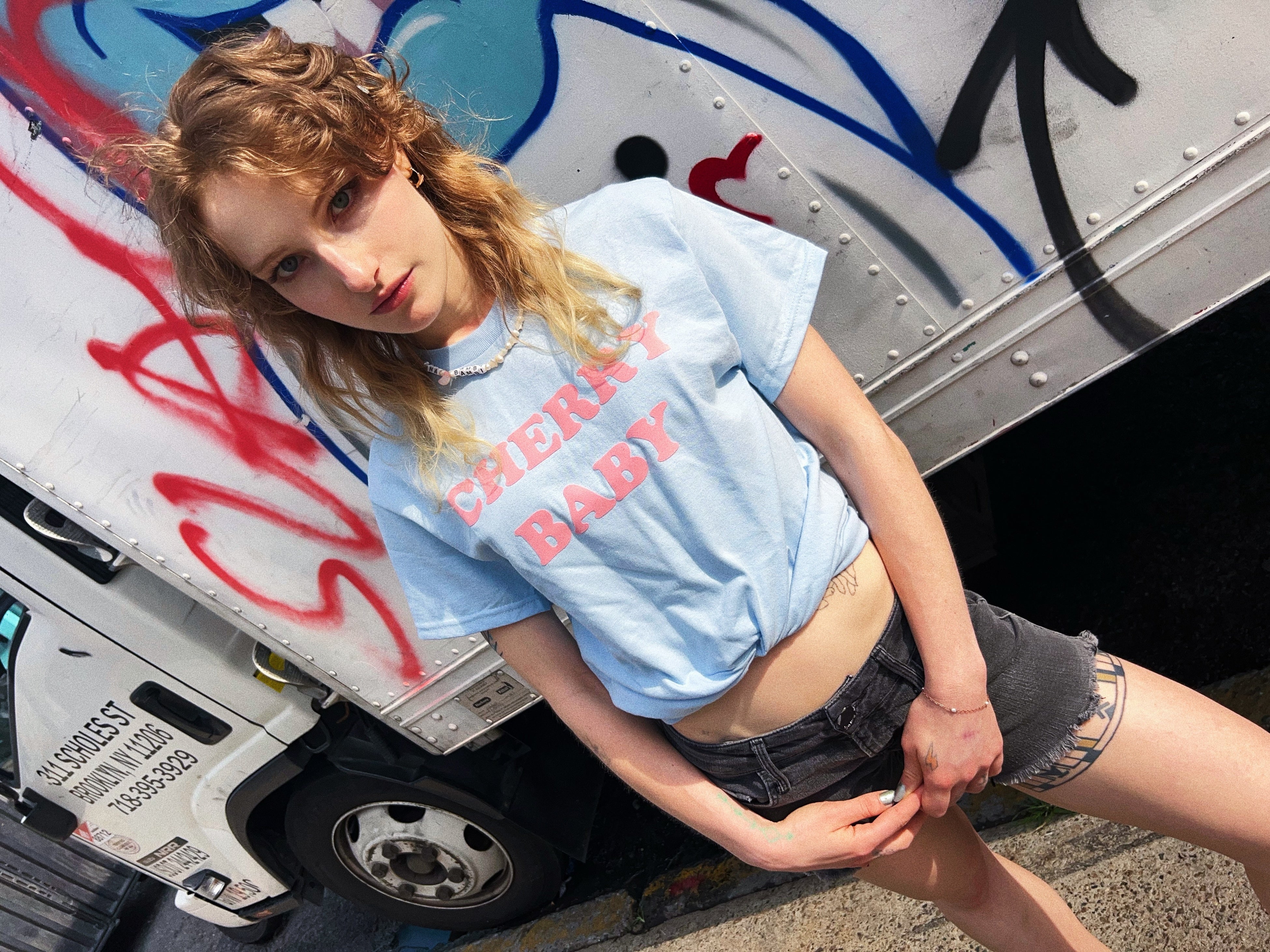 今回は3年ぶりとなる「bonjour records」でのローンチのために、定番でもある”CHERRY BABY Tee”のエクスクルーシブカラーを作成。他にも、イルカや蝶々をラインストーンであしらったキッチュなタンクトップや、スタッズロゴのチビTee、ラグランTeeなども多数ラインアップいたします。