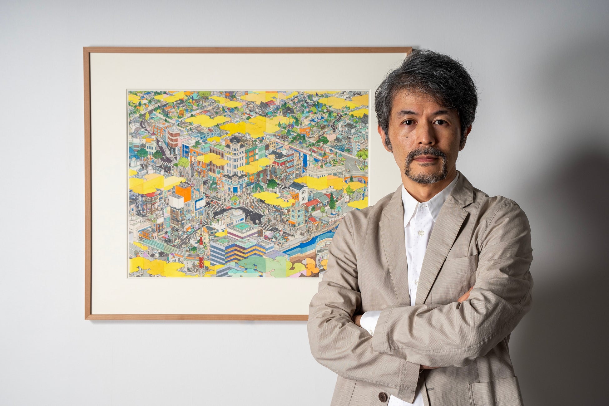 1969年東京生まれ。群馬県で育ち、1996年東京藝術大学大学院美術研究科油画専攻修了。都市や戦場の俯瞰図を描くことで知られ、伝統的な日本スタイルの油絵技法に加え、彫刻、日本の芸術形態である漫画、インスタレーションアートなど様々なメディアを駆使します。山口氏の幅広い活動は、長年にわたって日本中で高く評価されてきました。故郷・桐生で初の芸術大使に就任し、日本美術を独自に分析した著書『へんな日本美術史』は2013年に第12回小林秀雄賞を受賞。成田国際空港や東京メトロ日本橋駅などのパブリックアートを制作。新聞連載や小説の挿絵、表紙絵、テレビ番組のクレジットなど多数制作。TOKYO 2020パラリンピックの公式アートポスターも制作。国際的にも作品を発表しており、主な個展に「TOKIORE(I)MIX」(メゾンエルメス、ルフォーラム、東京)、「Stepping Back to Seek the Underneath」(水戸芸術館現代美術ギャラリー)、「Resonating Surfaces」(大和日英基金ジャパンハウス、ロンドン)など。
