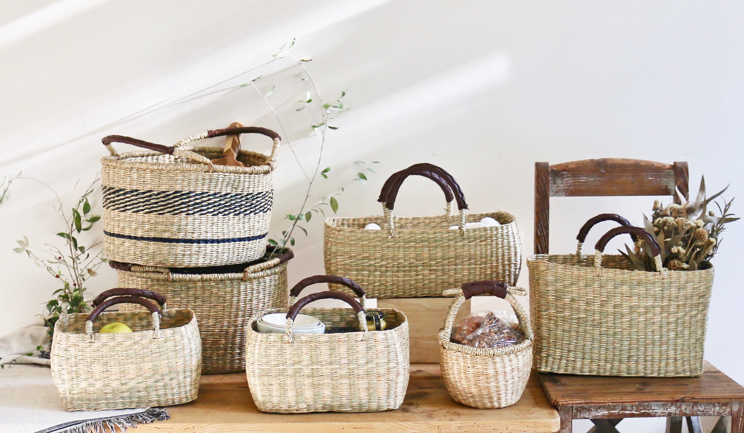 気の利いたサイズの天然素材のカゴは、家のどこに置いても絵になります。