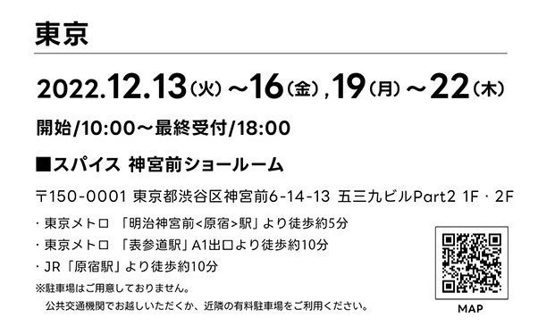 【初の東京オフィスで開催】“SPICE of Life 2023 SPRING & SUMMER 新商品展示会TOKYO”を2022年12月13日(火)より開催します。
