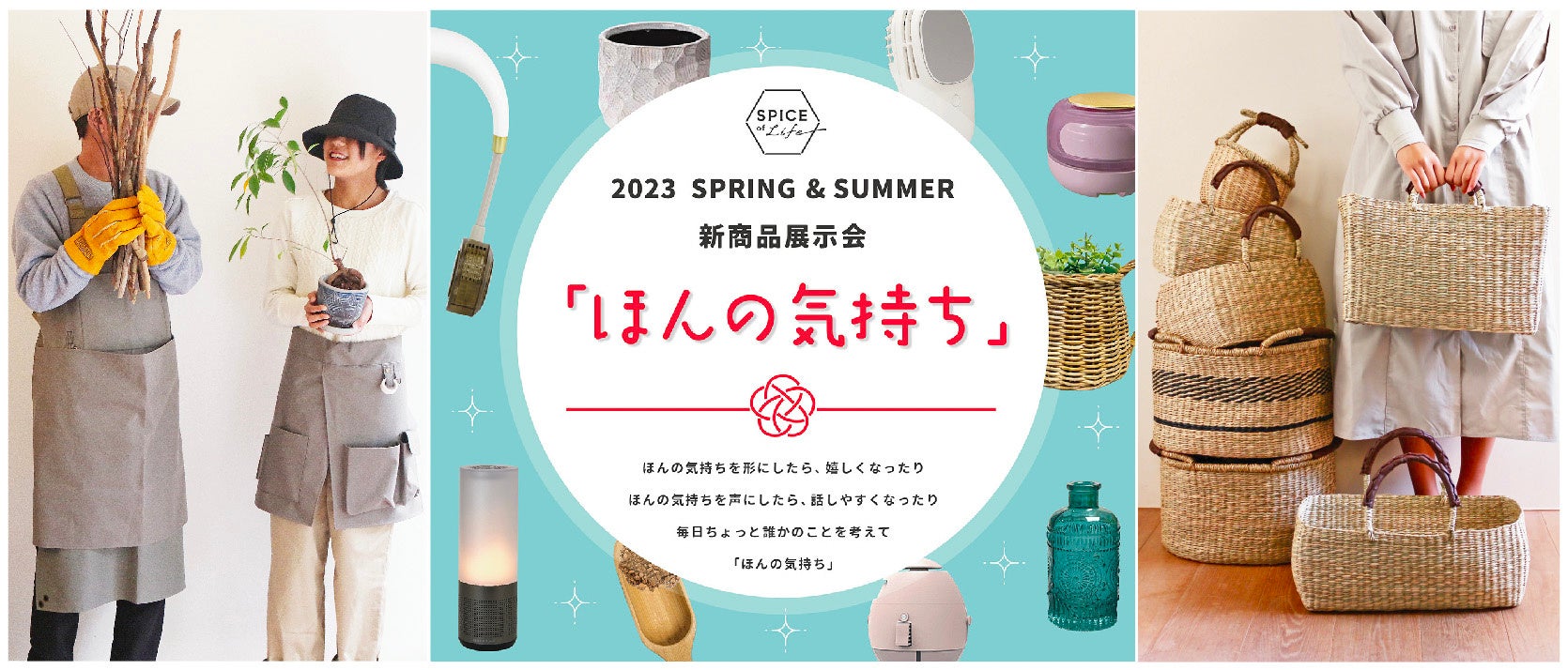 雑貨企画・製造・卸を行う株式会社スパイス(本社:愛知県名古屋市、代表:今井 修)は、「SPICE of Life 2023 SPRING & SUMMER 新商品展示会TOKYO」を2022年12月13日(火)~2022年12月22(木) スパイス東京神宮前オフィスにて開催致します。プレス関係の方や、これからスパイスと取引を考えている方も、お気軽にお越しください。