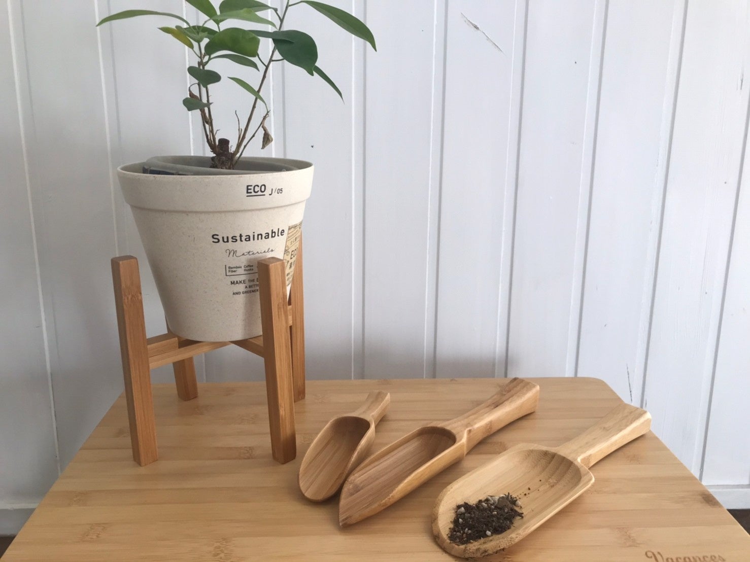 小家具、カトラリー、キッチンまわりやデスク周りはもちろん、 ガーデン周りも竹素材に。