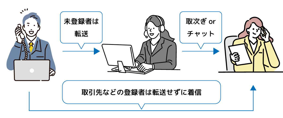 さらに、無駄な電話取次の削減や営業電話のカットなど社内外の電話業務を効率化します。