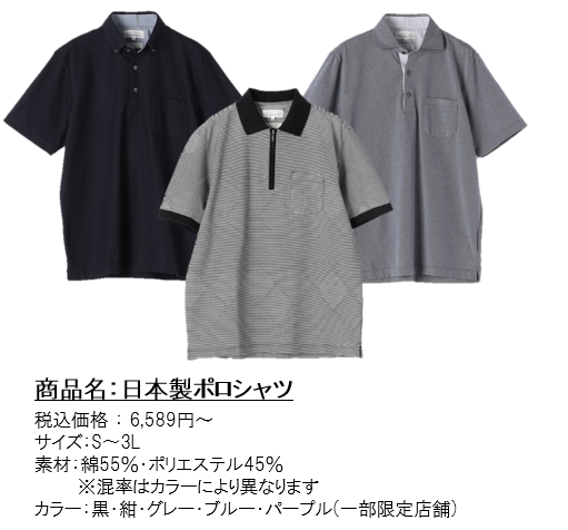 クールビズやテレワークではもちろん、カジュアルウェアとしてもお使いいただけるよう、カラーバリエーションだけでなく、ワイドカラー・ボタンダウン・ハーフジップタイプなどスタイル数を増やしてご用意しています。