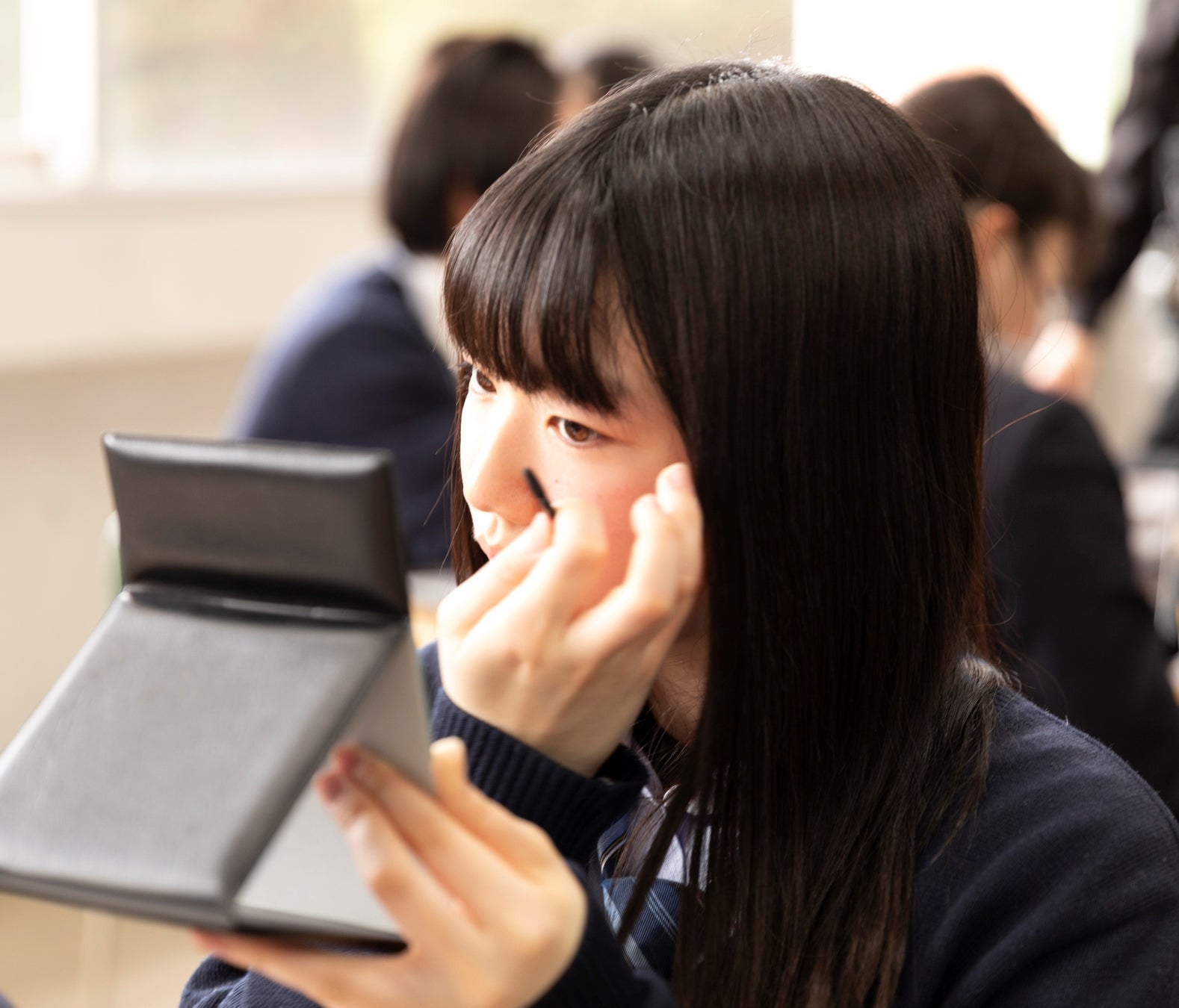 実施後のアンケートでは、メイクを通して「自信が持てた」「もっとメイクをしてみたくなった」「普段使わない色を初めて使ってみて、意外と似合うんだと思った」などの声が多数寄せられ、メイクで自分を表現する楽しさを感じてもらえました。また、授業を通して気づいたこととして、「ペアの子に教えてもらって自分の新しい性格に気づけた」「自分の好きなメイクをすればいいんだ!」「自分らしさが見つかった」など、新たな自分の一面に気づく機会になったという声も寄せられました。