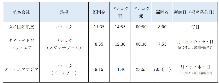 福岡=タイ(バンコク)線運航スケジュール(9月1日時点)