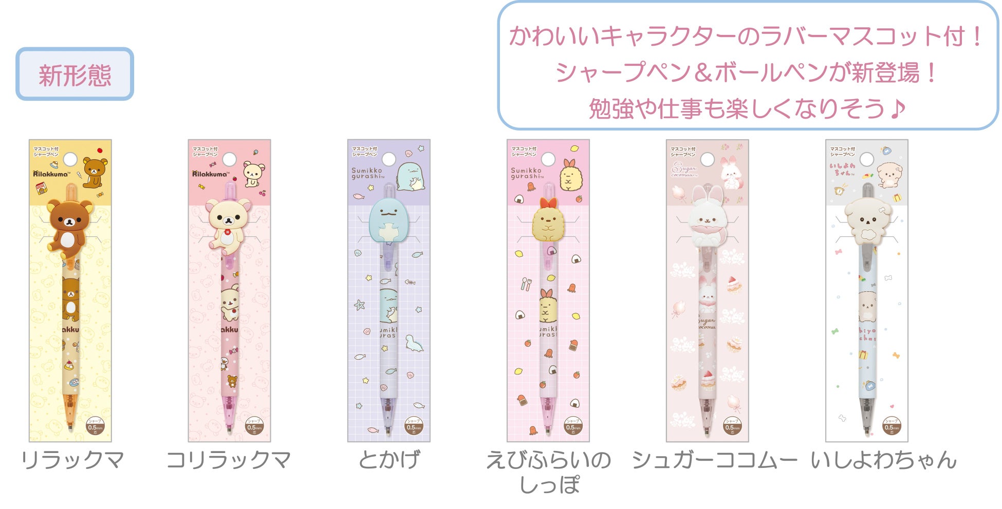 そして、「リラックマ」「すみっコぐらし」はもちろん、Xを中心に話題の「いしよわちゃん」、ぬいぐるみアイテムが大人気の「シュガーココムー」のマスコットが付いたシャープペン・ボールペンや、書類をまとめるのに便利なクリップなどが新登場します。