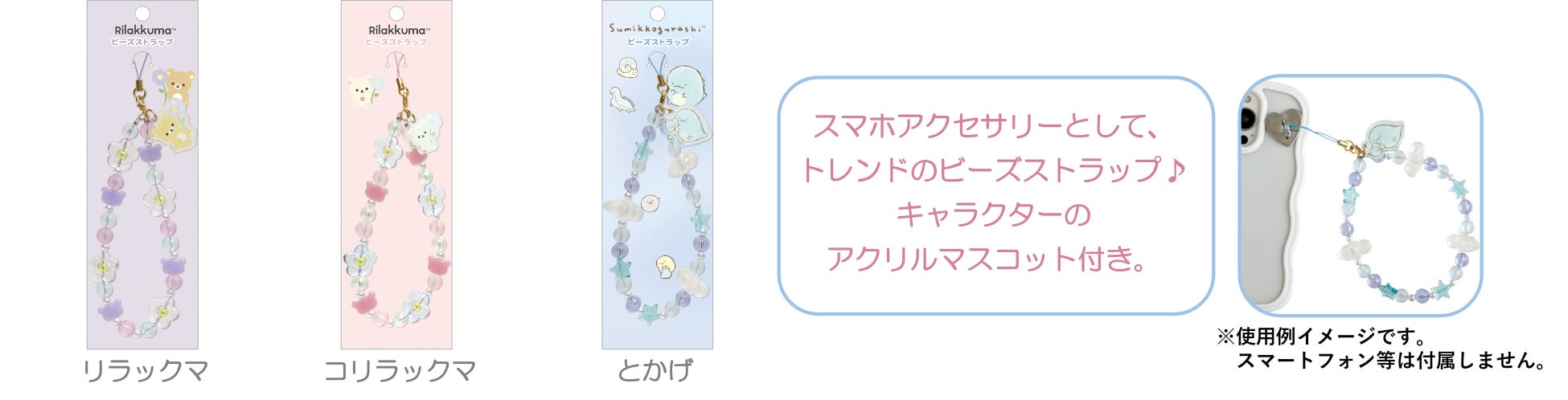 ・ビーズストラップ(各1,320円※税込):アクリル製マスコット付・ビーズ付・ストラップパーツ付
