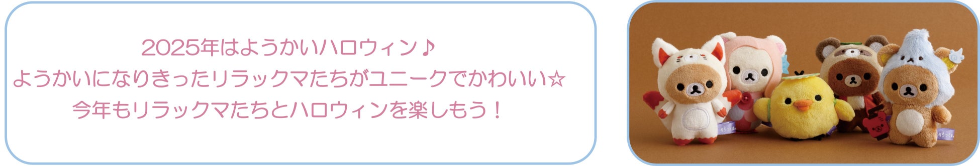 「リラックマ」「すみっコぐらし」のアイテムでは、スマートフォンアクセサリーとしてトレンドの“ビーズストラップ”やサンエックスならではの“ぬいぐるみ型のスマホスタンド”などのモバイルアイテム、人気が続いている前髪クリップはぷくっとした今っぽい仕様で登場します。さらには、ハロウィンのてのりぬいぐるみも発売。2025年「リラックマ」のハロウィンは、ようかいになりきったかわいいアイテムで、「すみっコぐらし」は、みんなの体の色がいつもとちょっと違う…?スプーキーデザインです。