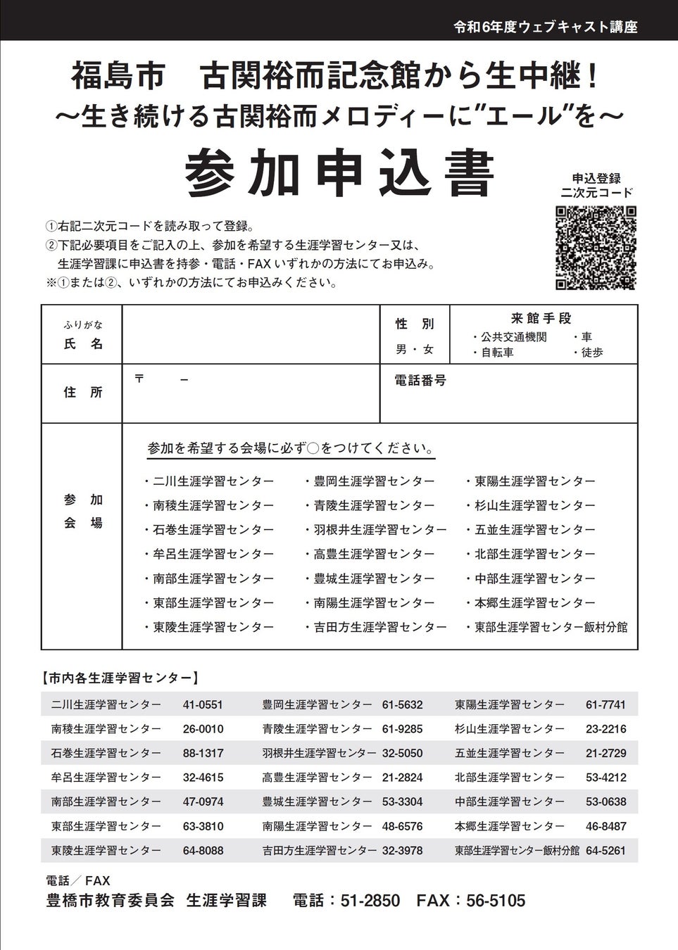 ②豊橋市生涯学習課または、各生涯学習センターに申込書の提出(電話・FAX可)
