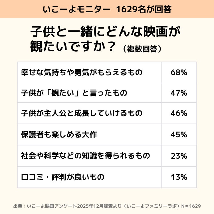 ~いこーよファミリーラボ調べ:ママパパが映画に求めるのは「勇気や成長」~