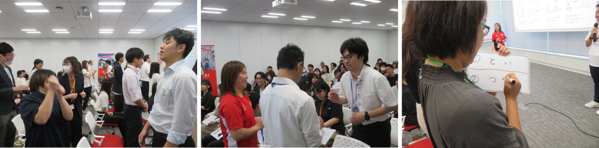 従業員全員で行った参加型企画の「伝言ゲーム」では、慣れない口話やジェスチャーでコミュニケーションをとることの難しさが各々の表情から伝わり、体験型ワークの「手話勉強会」では様々な日常的な単語をデフアスリートから学びました。