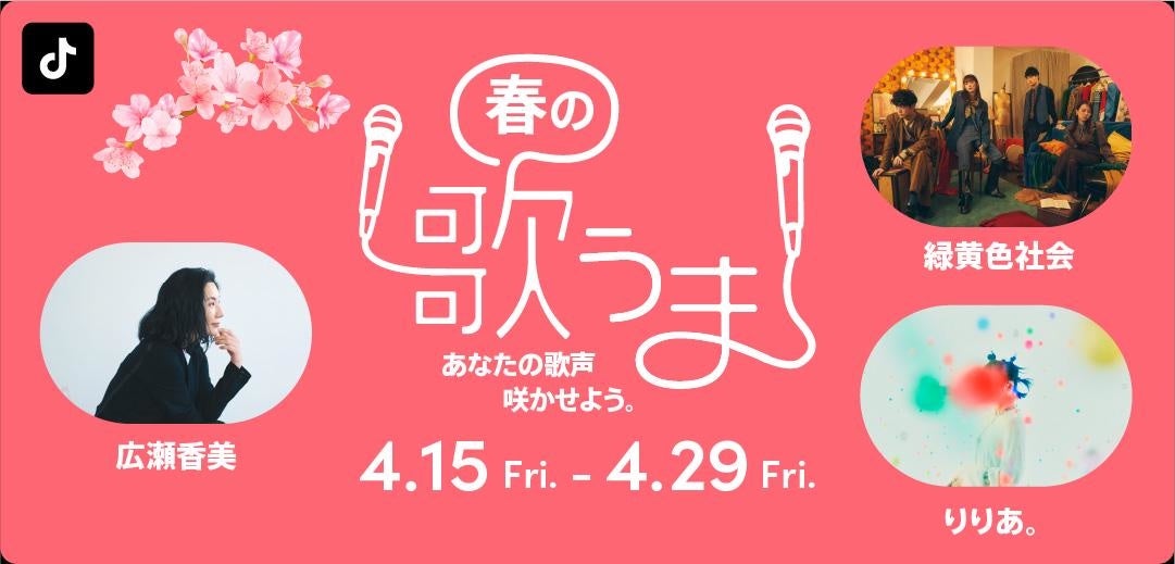 TikTok、「#春の歌うま」4/15からスタート!アンバサダーに緑黄色社会・りりあ。が、プロフェッサーに広瀬香美が就任。優秀投稿者は各アーティストのTikTok LIVEに出演できるチャンスも!