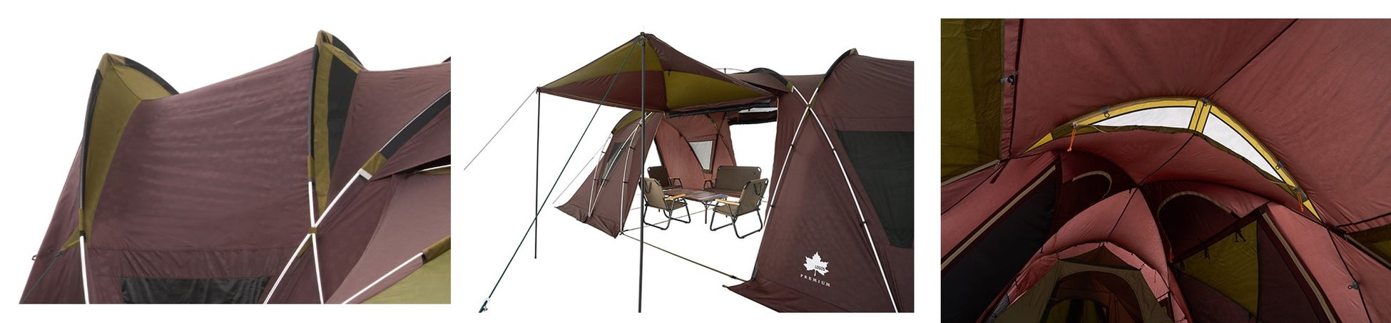 どんぐり形のフレームが広くて高い空間を実現!家族やグループでも広々と過ごせる大型2ルームテント「プレミアム エーコン PANEL EVER DOME L」新発売!