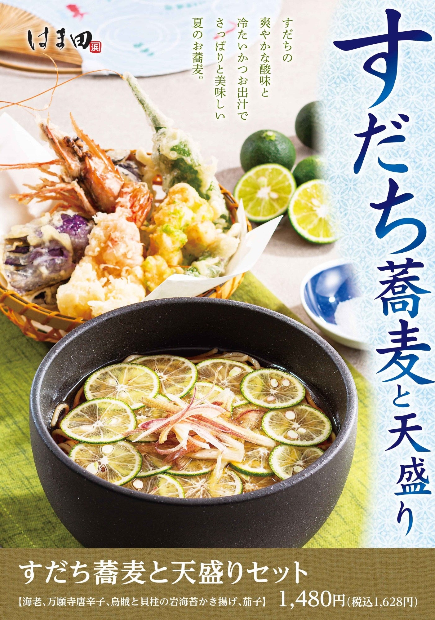 【残暑を味わう】爽やかな酸味と冷たいかつお出汁「すだち蕎麦と天盛りセット」期間限定で新登場!