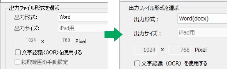 出力形式に透明テキスト付きのPDFを追加しました。スキャン画像上の文字が検索できるようになります。 |