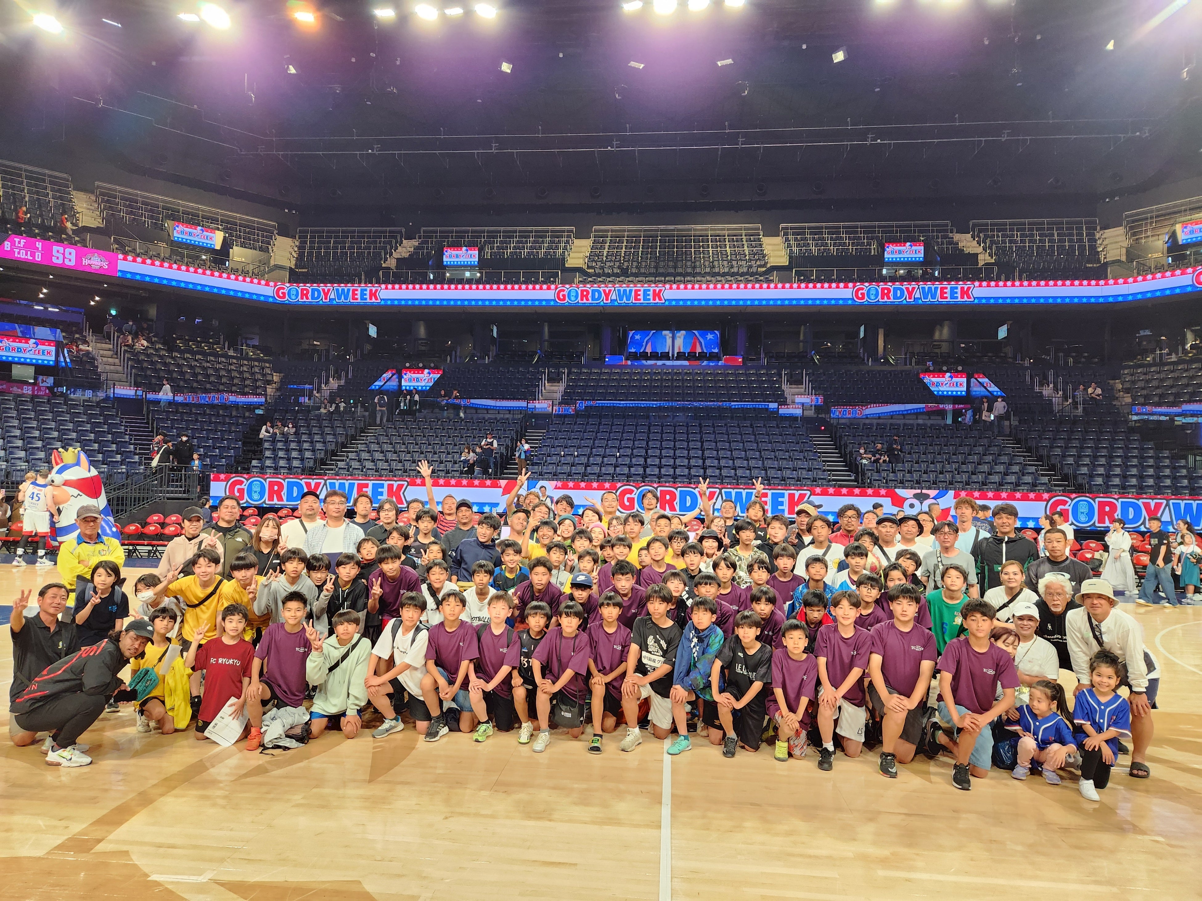 この度、沖縄市の美原クラブ、FC泡瀬、美東FCの子どもたち及び父母の皆さまと兄弟都市の大阪府豊中市のこども達が、兄弟都市サッカー交流の一環として、スポーツの垣根を超え、3月24日(日)に行われた秋田ノーザンハピネッツ戦を観戦しました。