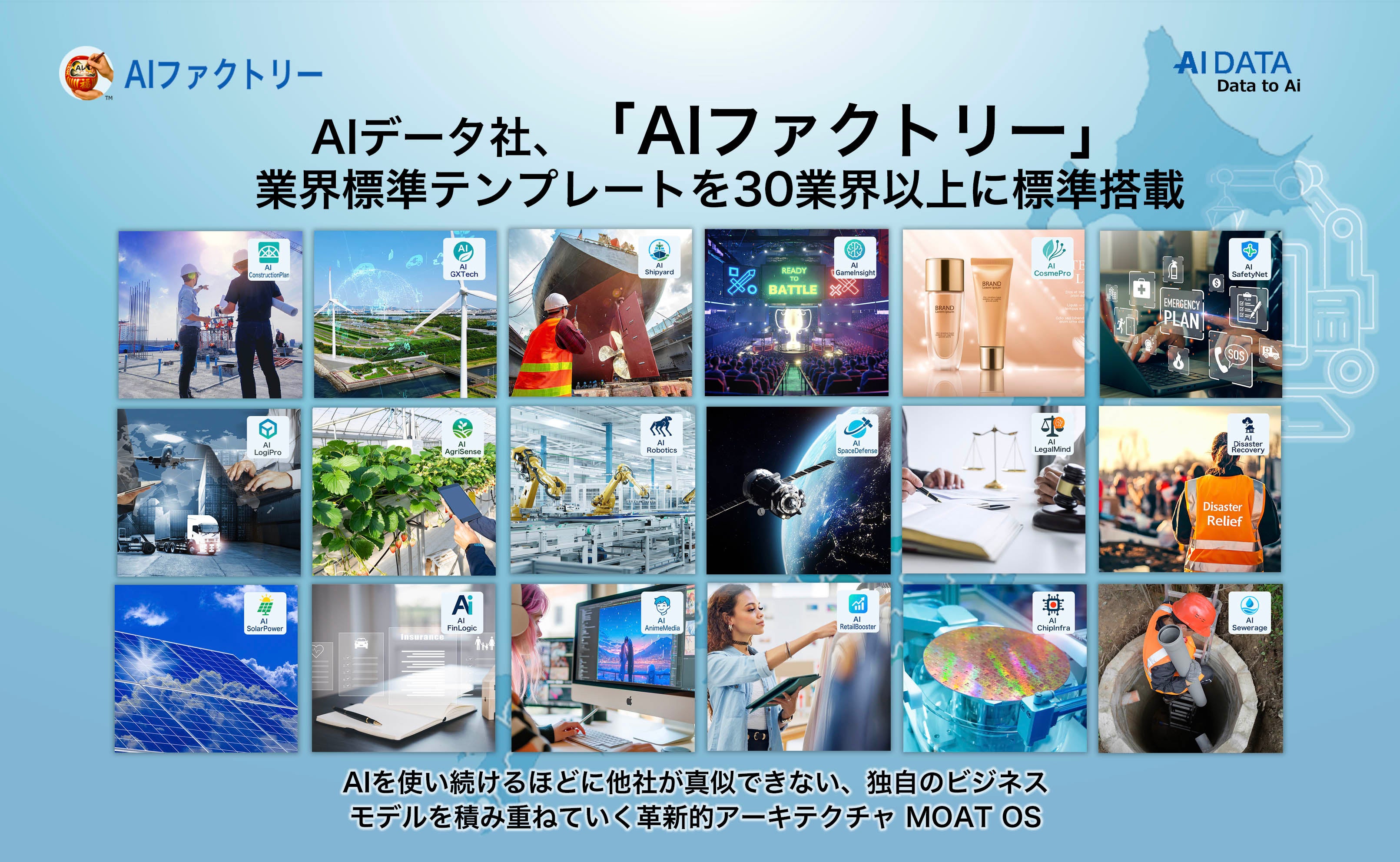 AIデータ社、「AIファクトリー」に業界標準テンプレートを30業界以上に標準搭載 〜法務・医療・宇宙防衛まで、即戦力AI導入で日本の産業基盤を革新〜
