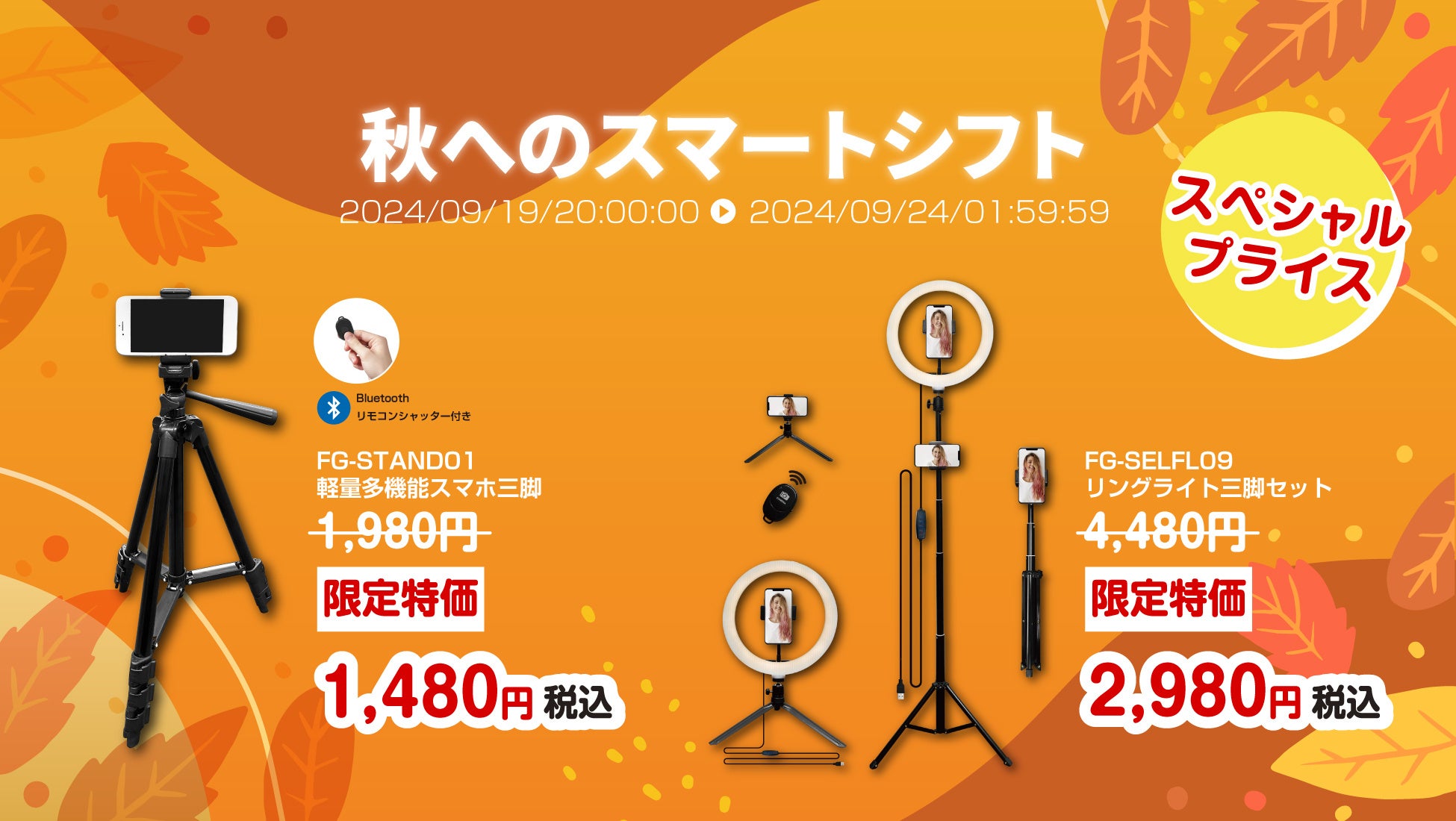 楽天「Show !t」では、9月19日スタートの楽天お買い物マラソンにて、スマホ用三脚をスペシャルプライスで販売!行楽シーズンの撮影におすすめです。
