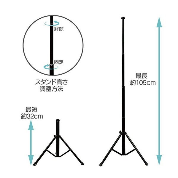 ・三脚の高さは最長105cm、4段階の調整が可能で撮影シーンに合わせて自由に設定できます。