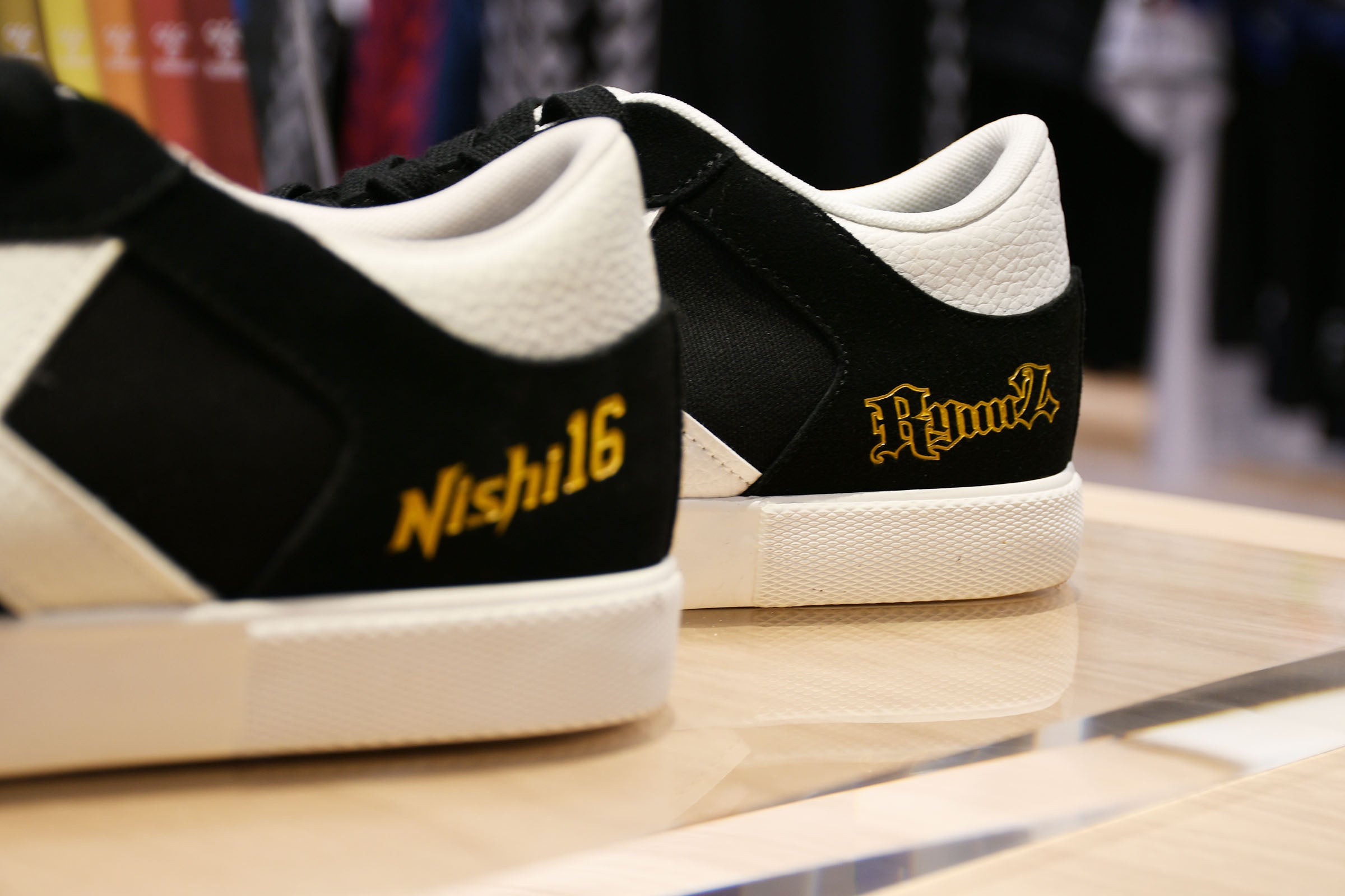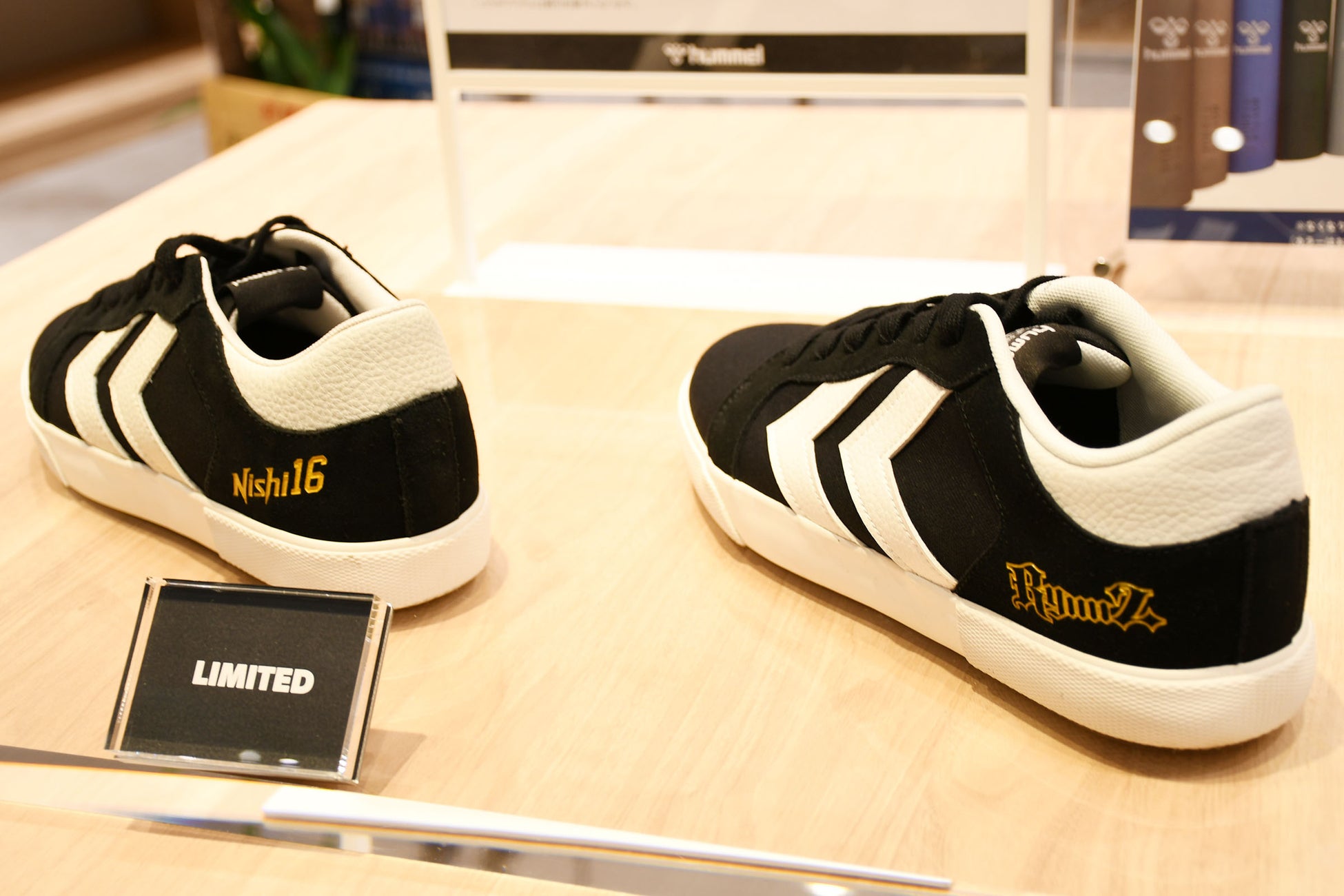 また、先日契約を発表した阪神タイガースの西勇輝選手と梅野隆太郎選手とのコラボスニーカーの予約受付も数量限定で対応。両選手のオリジナルロゴが入ったスニーカーを展示してあるのは、このEXPOCITYだけ。気になるサイズも試せます。予約は8月18日までで、予約特典として各選手のポストカードをプレゼントします。