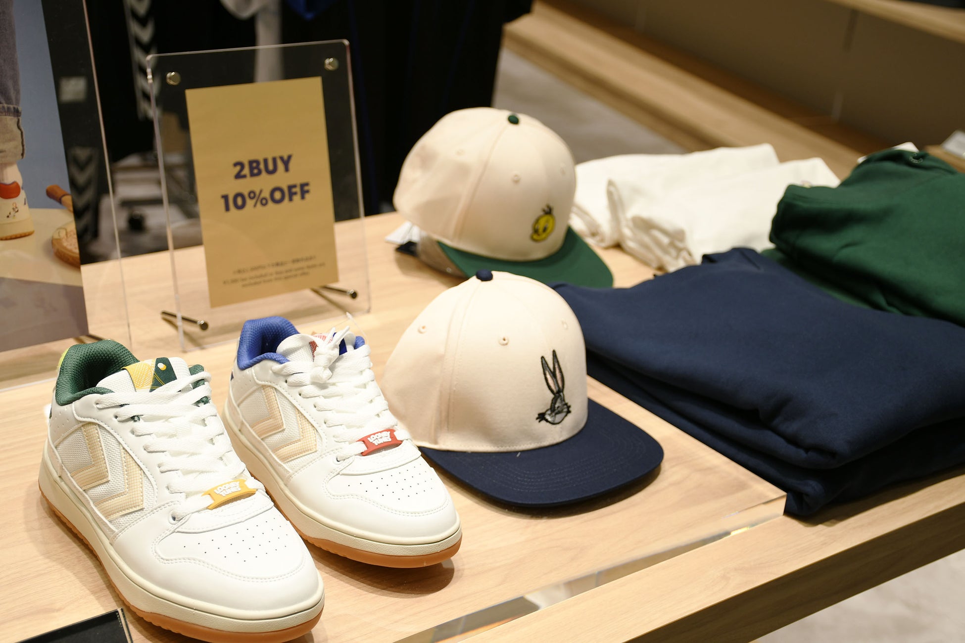 ヒュンメルのライフスタイルアパレルやスニーカーを中心にラインナップし、ケロッグやワーナー・ブラザース アニメーションのアイコン的存在「Looney Tunes(ルーニー・テューンズ)」とのコラボコレクションなど、今まで通販サイトでしか買えなかったアイテムも手に取って見られます。