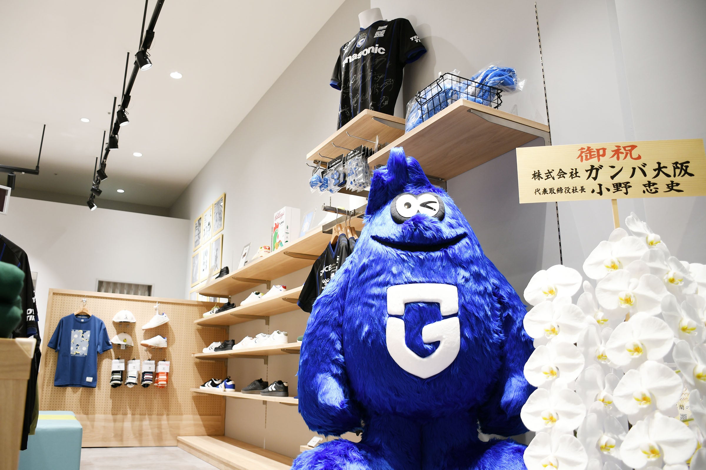 ガンバ大阪の関連アイテムも年間を通して取り扱い、ユニフォームの他、ガンバ大阪エンブレム付きのコラボアパレルも展開します。