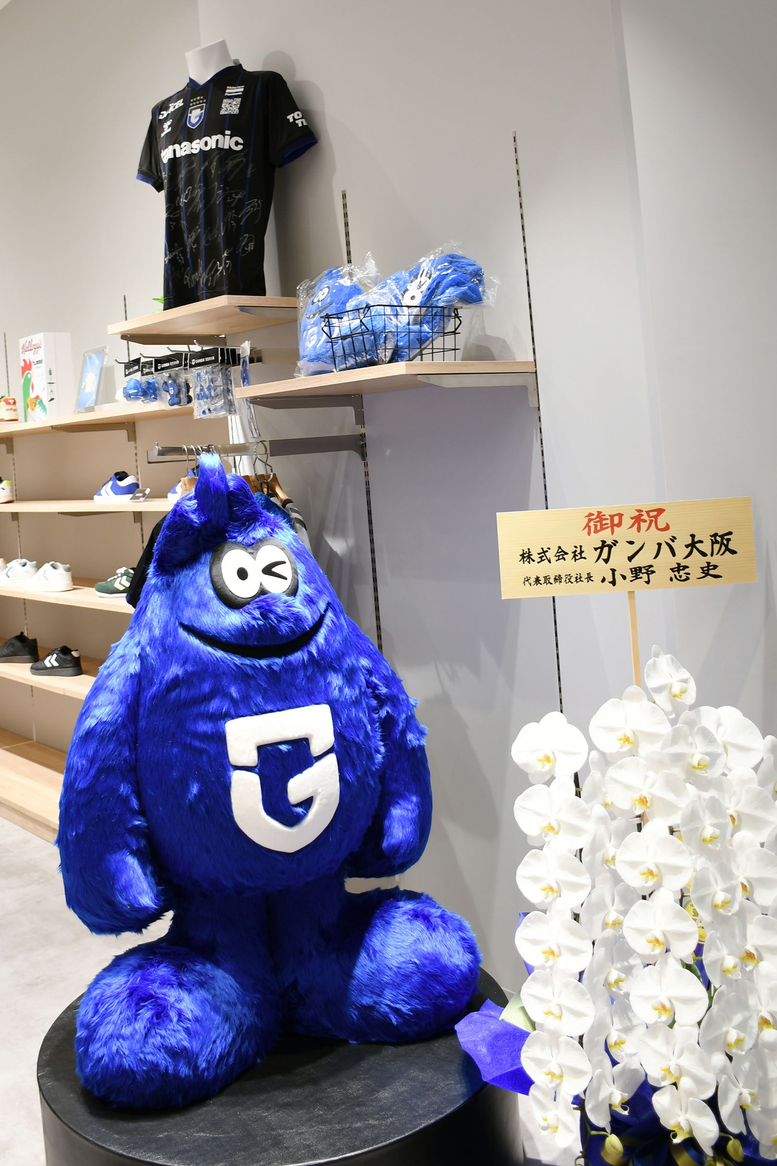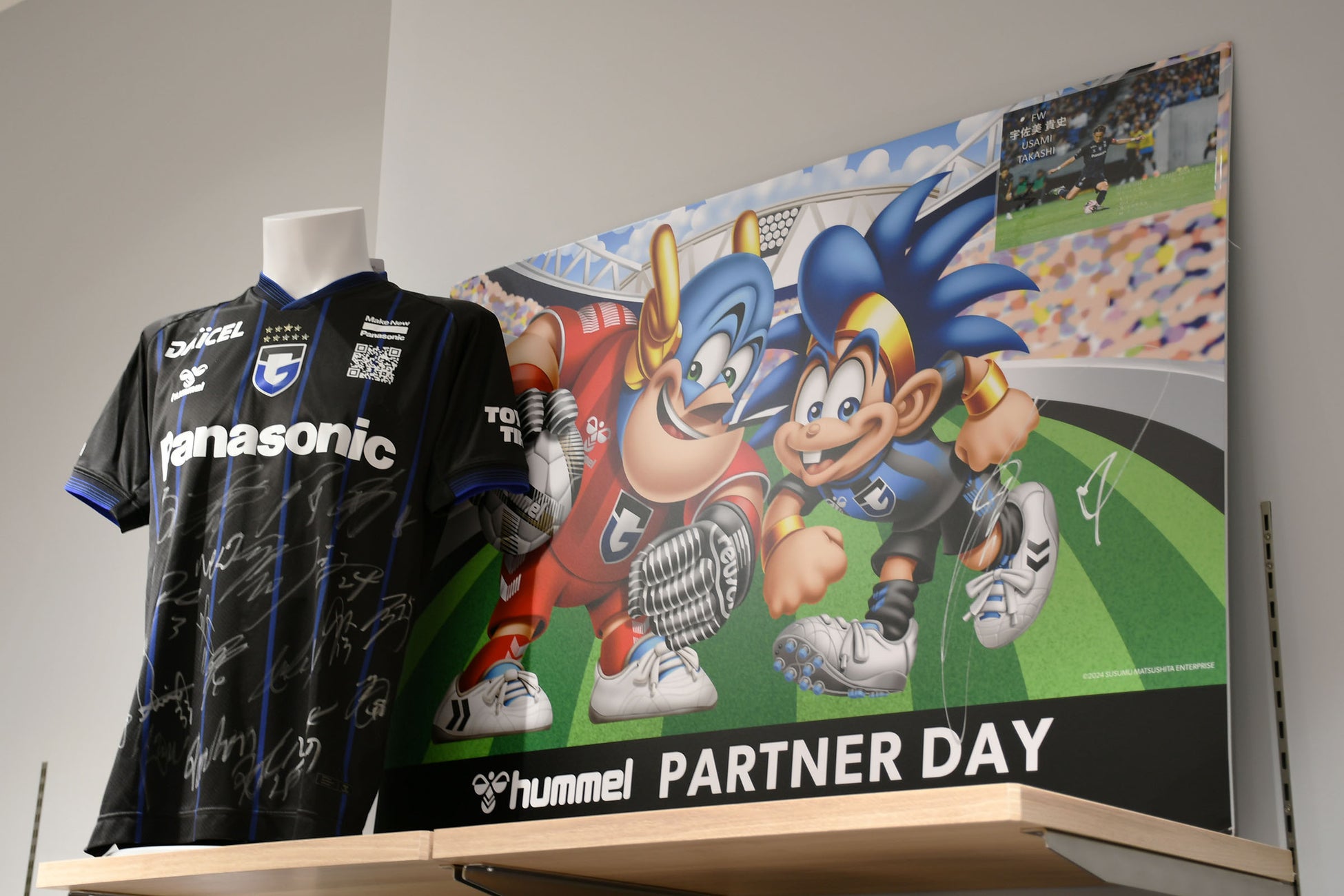 さらに選手のサイン入りユニフォームやパートナーデーのサイン入りパネルなど、ここだけでしか見られないグッズも展示。さらに、入り口にはビッグサイズのガンバ大阪オフィシャルマスコット『モフレム』がお出迎え。