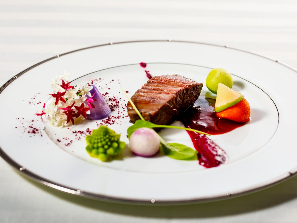 19階フレンチレストラン「ビストロ・ブルゴーニュ」では、唯⼀無⼆の横須賀港の眺望とともに、地産地消の⾷材を使ったフレンチをお楽しみいただけます。