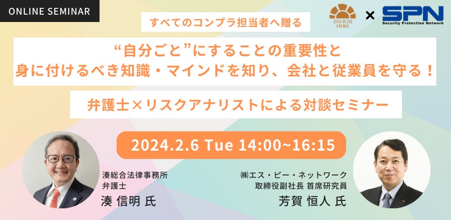 本セミナーでは担当者が身に付けるべき知識とマインドについて、第一線で活躍している弁護士とリスクアナリストにより、対談形式で解説いただきます。