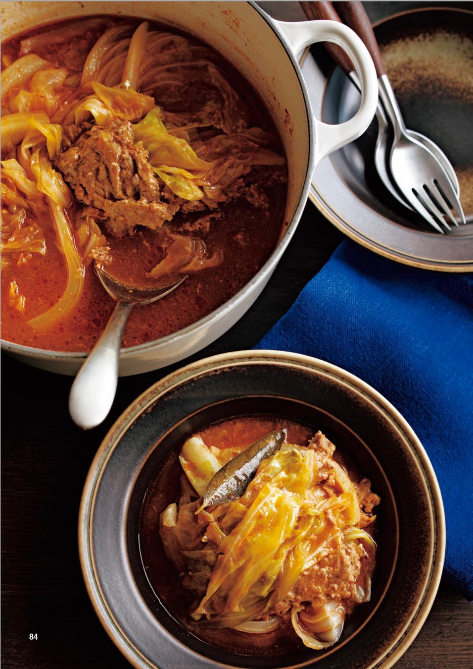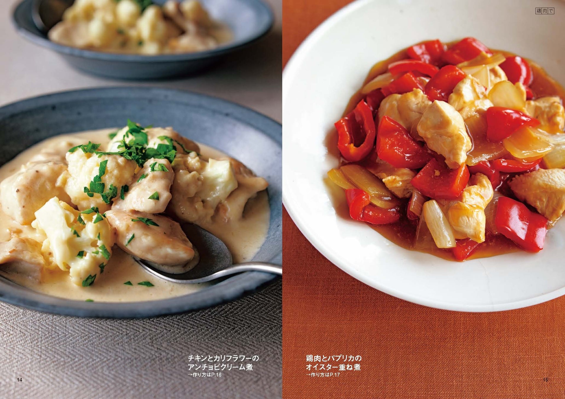 ほかに、食材を重ねて煮る蒸し煮、煮汁に材料を入れて煮るシンプルな煮込みなども紹介。洋風や中華風はもちろん、和風やエスニック風のものまでバリエーション豊かに楽しめます。