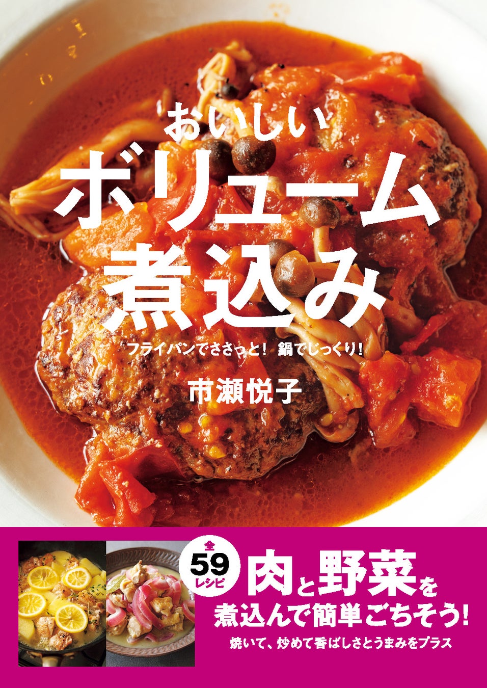 フライパンなら、肉をしっかり焼きつけたり炒めたりしてから煮れば、うまみが凝縮されるのはもちろん、煮込み時間も少なくてすみます。鍋を使った煮込みも、鍋を火にかければあとはほうっておくだけ。お肉料理が大好き!という市瀬さんが家でよく作るデイリーな煮込みから、特別な日に作りたいごちそう煮込みまで、バリエーション豊かに紹介しています。