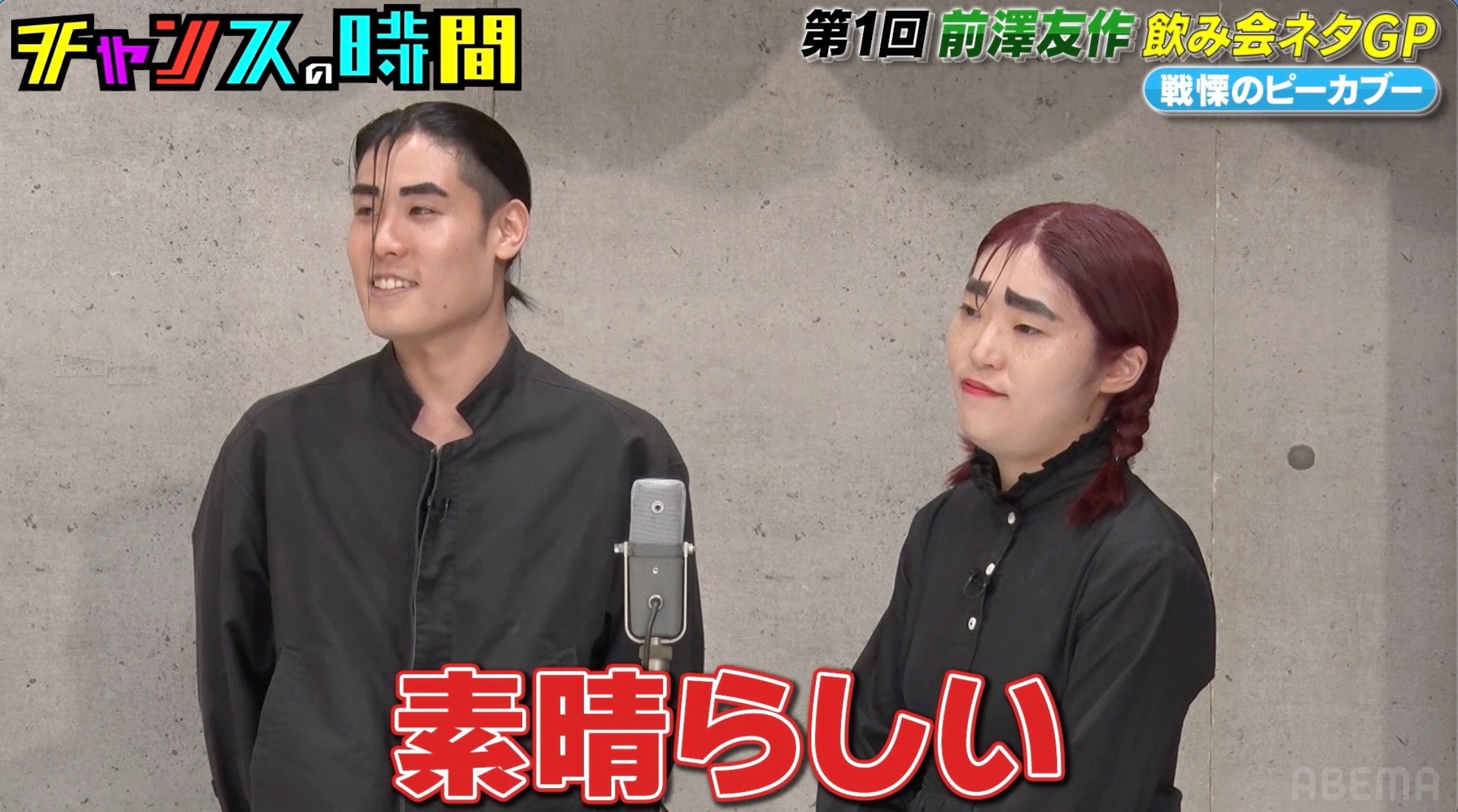 審査では、前澤さんにハマるための独特な審査基準に芸人たちが振り回されることに。小道具ボケを盛り込んだネタでトップバッターを飾ったブラゴーリに、ノブさんは「吉本の後輩としては全然いいんじゃないですか。いろんなネタ番組に呼ばれる」と評価したものの、「君たちを紹介するのが恥ずかしい」「センスとがないと思われると…」と自身の体裁を気にして3点という厳しい採点に。一方、7点をつけたちゃんぴおんずの大ちゃんは「めちゃくちゃ面白くて満点ぐらいだったんですけど」と前置きすると、「ドラムと一緒にネタができるか」「ぼくたちは前澤さんが弾くドラムに合わせて『ちょんってすなよ』をやる」と明かし、「音楽性が大事」と前澤さんにハマるポイントを伝授しました。さらに、2点と辛口評価を下したちゃんぴおんずの日本一おもしろい大崎さんは「小道具を使ったらダメ」「前澤さんは小道具が好きじゃない」と理由を語ると、「自分はドラム叩くのに?」と疑問を口にした大悟さんに「前澤さんは何したっていい」と即答。当然といった顔で断言した日本一おもしろい大崎さんに、大悟さんも爆笑する展開となりました。